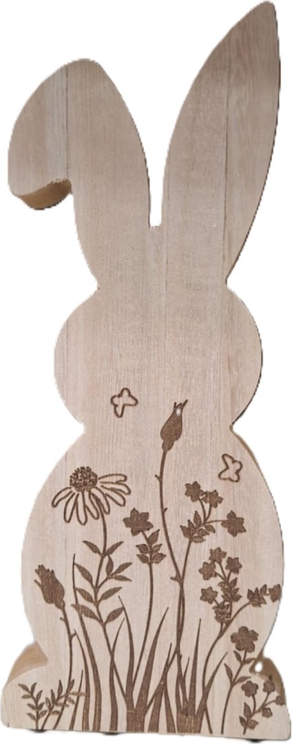 Vneste do svého domova kousek přírody a jemné elegance. Tento sedící dřevěný zajíc okouzlí propracovaným květinovým motivem a přirozenou kresbou dřeva, díky které je každý kus originál.